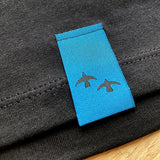 Super soft print on a navy blue, unisex Continental Clothing Salvage T-Shirt, made from 100% recycled materials, with woven Ólafur Arnalds bird logo tag.